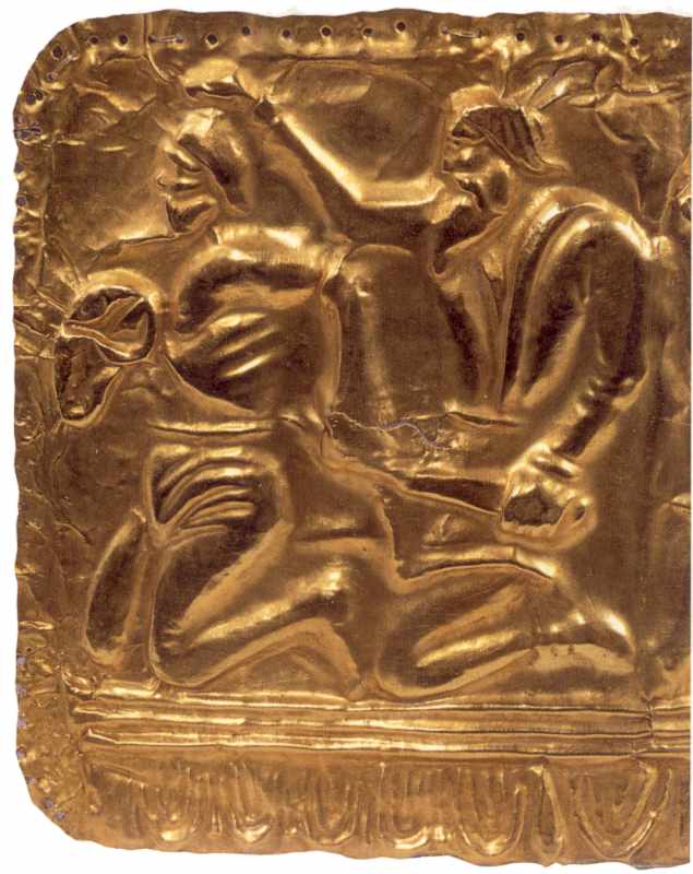 Фігури 1 - 2 (полоненого приносять у жертву)Розмір зображення: 635:800 піксел Джерело: Gold der Steppe: Archaeologie der Ukraine. – Schleswig: 1991, S. 379, № 99. |