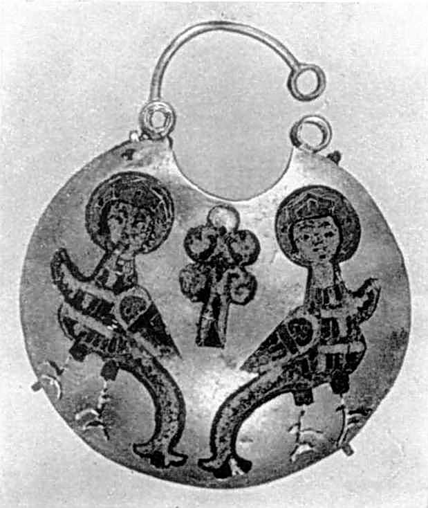 Золотий колт з с. Сахнівки Черкаської обл. Вигляд з обох боків. XI – XII ст. Державний історичний музей УРСР.