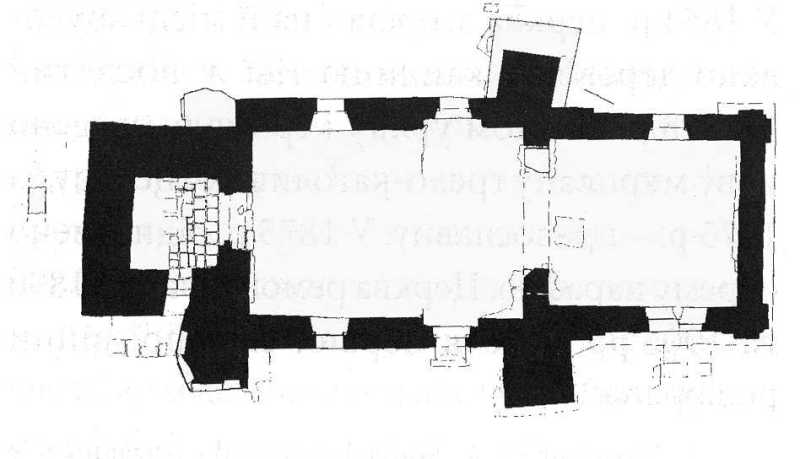 План церкви на XVIIІ ст. За матеріалами розкопок 1992 р. Опрацювання автора.