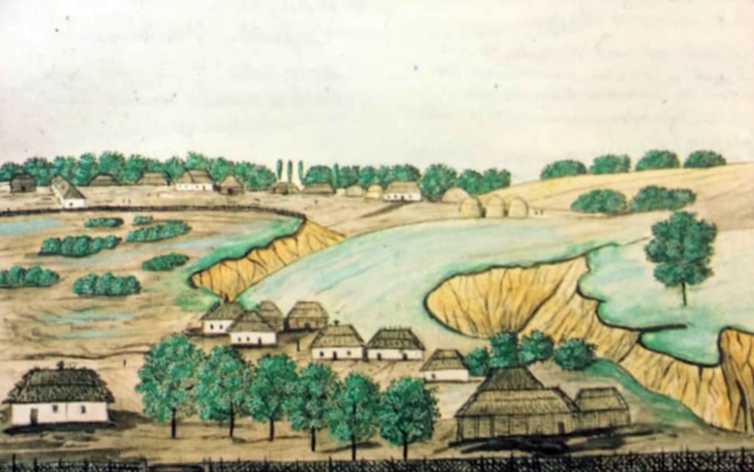 1854 р. Панорама села Розмір зображення: 754:472 піксел Рисунок Д. П. де ла Фліза 1854 р. Вище | Наступна сторінка