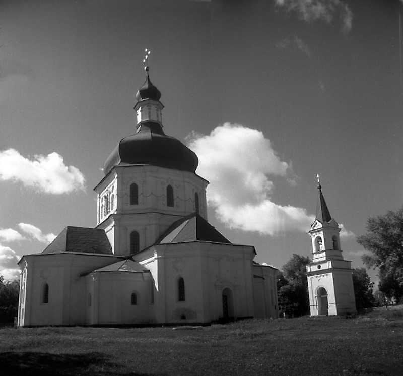 1993 р. Церква та дзвіниця. Вигляд з позиції А1Розмір зображення: 800:746 піксел 1993 р. 20 серпня. Фото М.І.Жарких. Негатека, № 834-16+7. |
