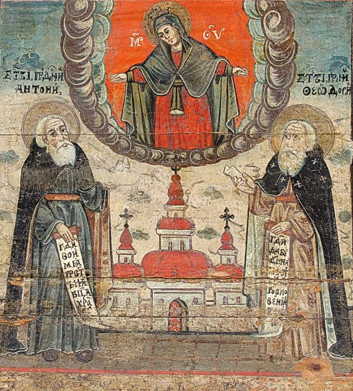 Богородиця ПечерськаРозмір зображення: 723:800 піксел Богородиця Печерська з Антонієм і Феодосієм. Розпис пределли у церкві Воздвиження в с.Сенява. 86: 86 см Нині в музеї-замку Ланцуті. |