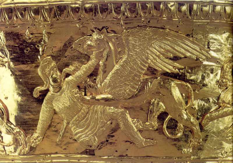 Варвар і грифонРозмір зображення: 800:560 піксел Джерело: Scythian art. – Leningrad: Aurora art publishers, 1986, № 227. |