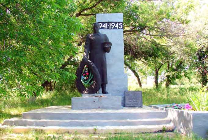 1966 мешканці села перепоховали останки загиблих воїнів із місць первісних поховань у братську могилу. На могилі споруджено пам’ятник. На низькому цегляному тинькованому постаменті-плінті (0,5 × 1,0 × 0,8 м), розміщеному на розлогому трисхідчастому стилобаті (0,4 × 7,0 × 7,0 м), встановлено типову залізобетонну скульптуру «Воїн з вінком» (вис. 3,5 м), яку відлито на ХСФ, згодом обміднену.