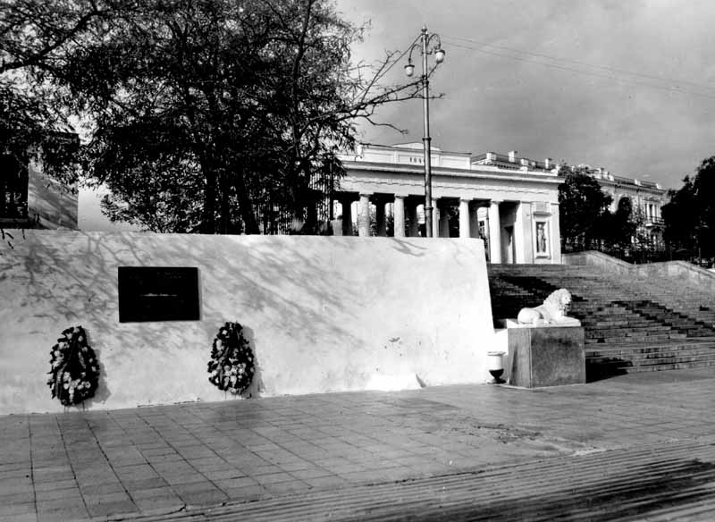 Підпірна стіна з меморіальною дошкою. Загальний вигляд. Фото 1974 Розмір зображення: 800:584 піксел Попередня сторінка | Вище | Наступна сторінка
