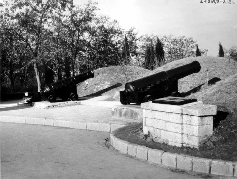 Реставрація меморіального позначення і встановлення біля нього гармат проведена в квітні-травні 1958 р. за проектом архітекторів А.Л. Шеффера та Н.А. Яшкіной. Проек знаходиться в архіві Севастопольської філії Діпроміста.