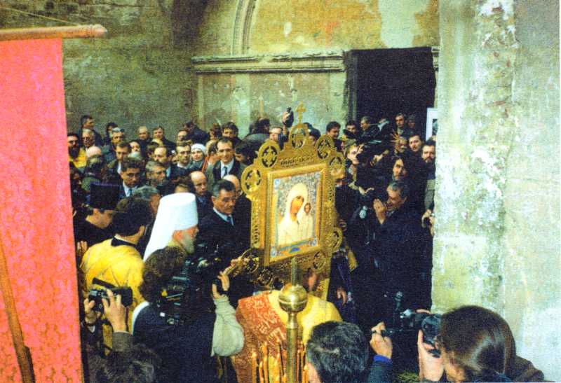 Урочисте закладення капсули з текстом звернення Президента України в руїнах Володимирського…Розмір зображення: 800:547 піксел Урочисте закладення капсули з текстом звернення Президента України в руїнах Володимирського собору. 21 грудня 1998 р. |