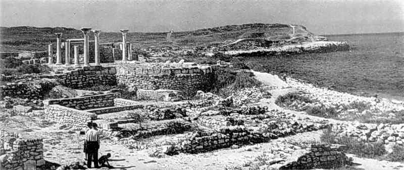 [1966 р.] Загальний виглядРозмір зображення: 800:337 піксел Руїни стародавнього Херсонеса. Сучасний вигляд. Джерело: Історія українського мистецтва. – К.: Наукова думка, 1966 р., т. 1, с. 93. |