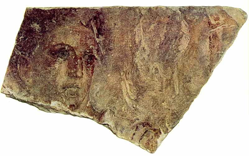 Голова юнака. Фрагмент розпису надгробка з Херсонеса. IV-III ст. до н. е. Живопис на камені. Висота 36 см. Херсонеський історико-археологічний музей.