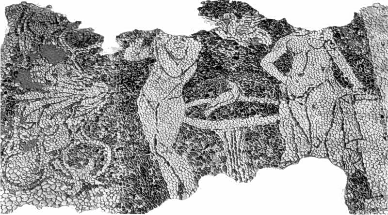 Підлога ванної кімнати жилого будинку. Херсонес. III-II ст. до н. е. Мозаїка. Розміри 200:312 см. Херсонеський історико-археологічний музей.