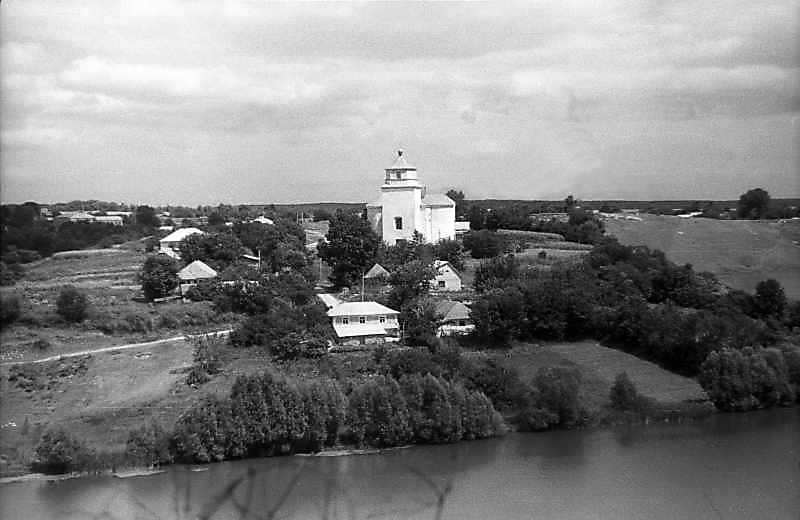 1990 р. Панорама села з церквою із заходуРозмір зображення: 800:520 піксел 1995 р. 25 липня. Фото М.І.Жарких. Негатека, № 859-24. |