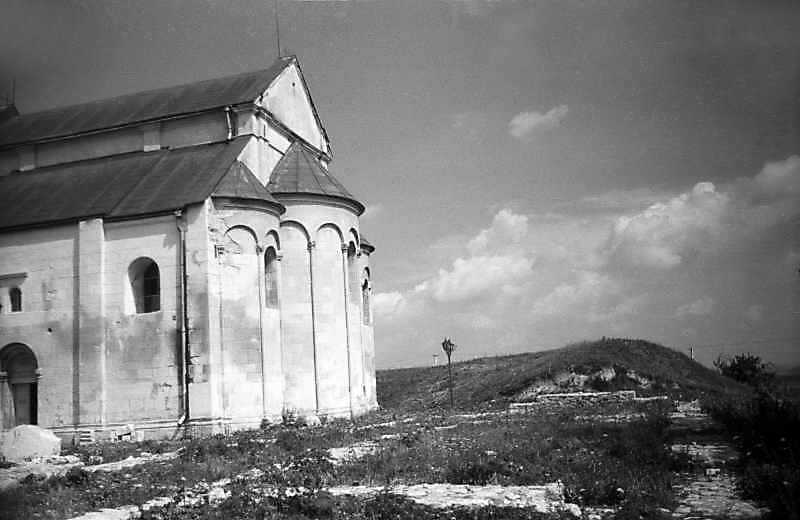 Східна частина церкви і оборонний валРозмір зображення: 800:520 піксел 1993 р. 18 липня. Фото М.І.Жарких. Негатека, № 814-15. |