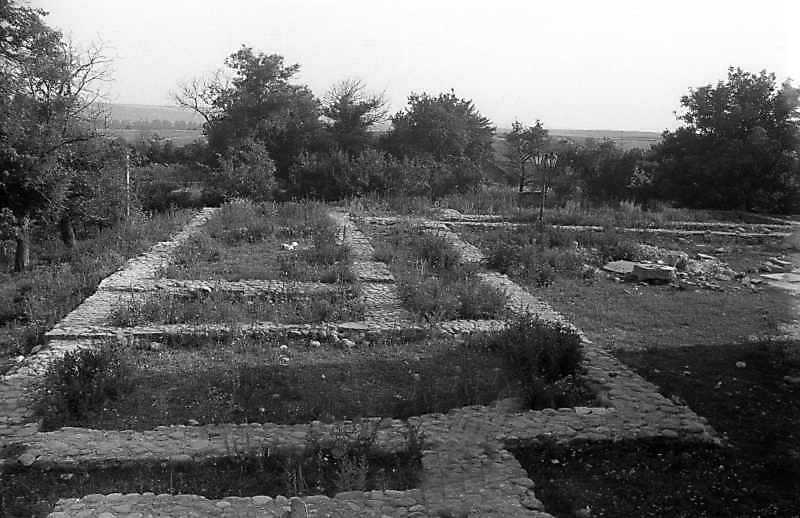 1994 р. Фундаменти корпусу келій. Вигляд з півночіРозмір зображення: 800:518 піксел 1994 р. 31 липня. Фото М.І.Жарких. Негатека, № 848-16. |