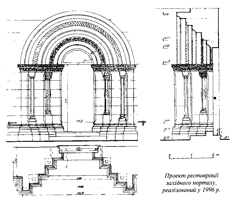 Проект реставрації західного порталу. Реалізований 1996 р. Розмір зображення: 806:711 піксел Вкладені елементи Фасад План Переріз