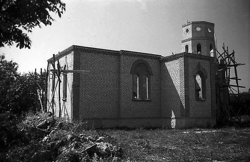 Нова церква в центрі села не на цвинтарі, до гол.вул. С1. Півциркульні вікна у стрілчастих нішах – подібно до Меджибізького замку. Спостереження М.І.Жарких, 15 серпня 1992 р.