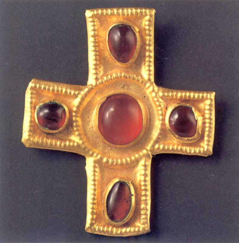 Золото, бронза, сердолік. Розміри 4.3: 3.6 см.