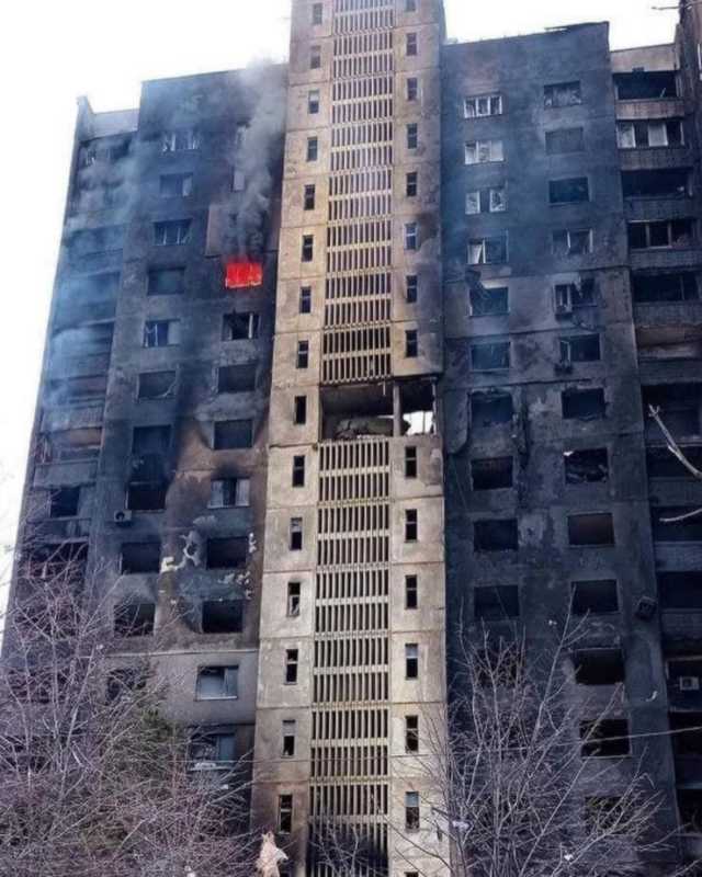 Туди прийшов «русский мир»: горить житловий будинок у Сіверодонецьку. Фото 8 березня 2022 р.