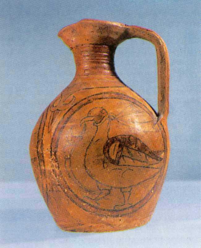 Глек-ойнохояРозмір зображення: 650:800 піксел Глек-ойнохоя з розписом (IX ст., с. Скалисте, АР Крим). Джерело: Історія української культури. – К.: 2001 р., т. 1, с. 1058. |
