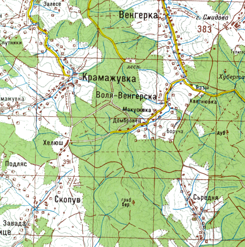 Карта (Скопув)Розмір зображення: 975:983 піксел Карта Київської військово-картографічної фабрики, масштаб 1:100000, аркуш 88, друк 2000 р. (за матеріалами 2000 р.). |
