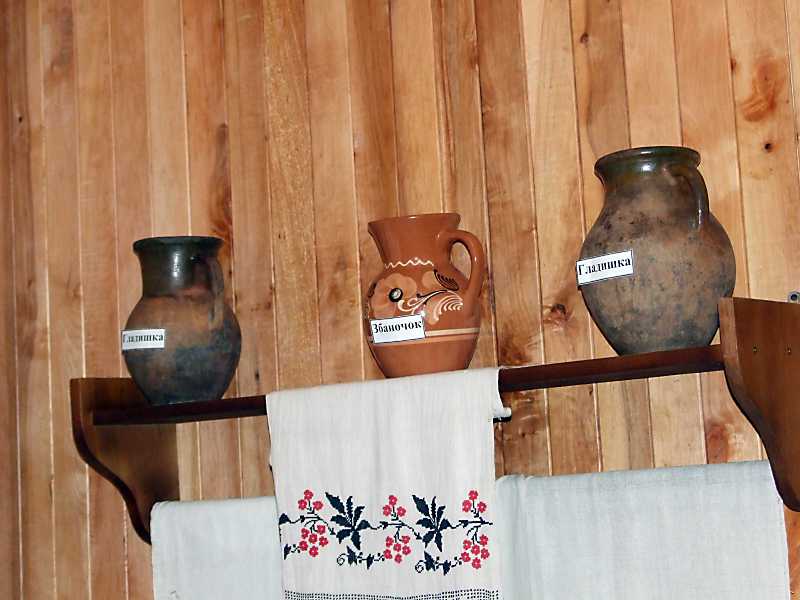 Посуд (2)Розмір зображення: 800:600 піксел 23 вересня 2011 р. Фото М.І.Жарких. Зліва направо – гладишка, збаночок, ще одна гладишка. |