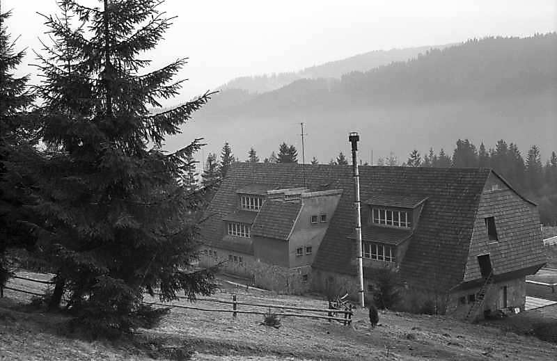 1979 р. Турбаза на тлі гірРозмір зображення: 800:519 піксел 1979 р. 2 квітня. Фото М.І.Жарких. Негатека, № 076-22. |