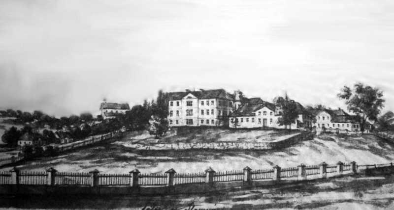 Літографія Розмір зображення: 800:428 піксел Літографія палацу Сангушків у Славуті за рисунком Наполеона Орди. Вище | Наступна сторінка