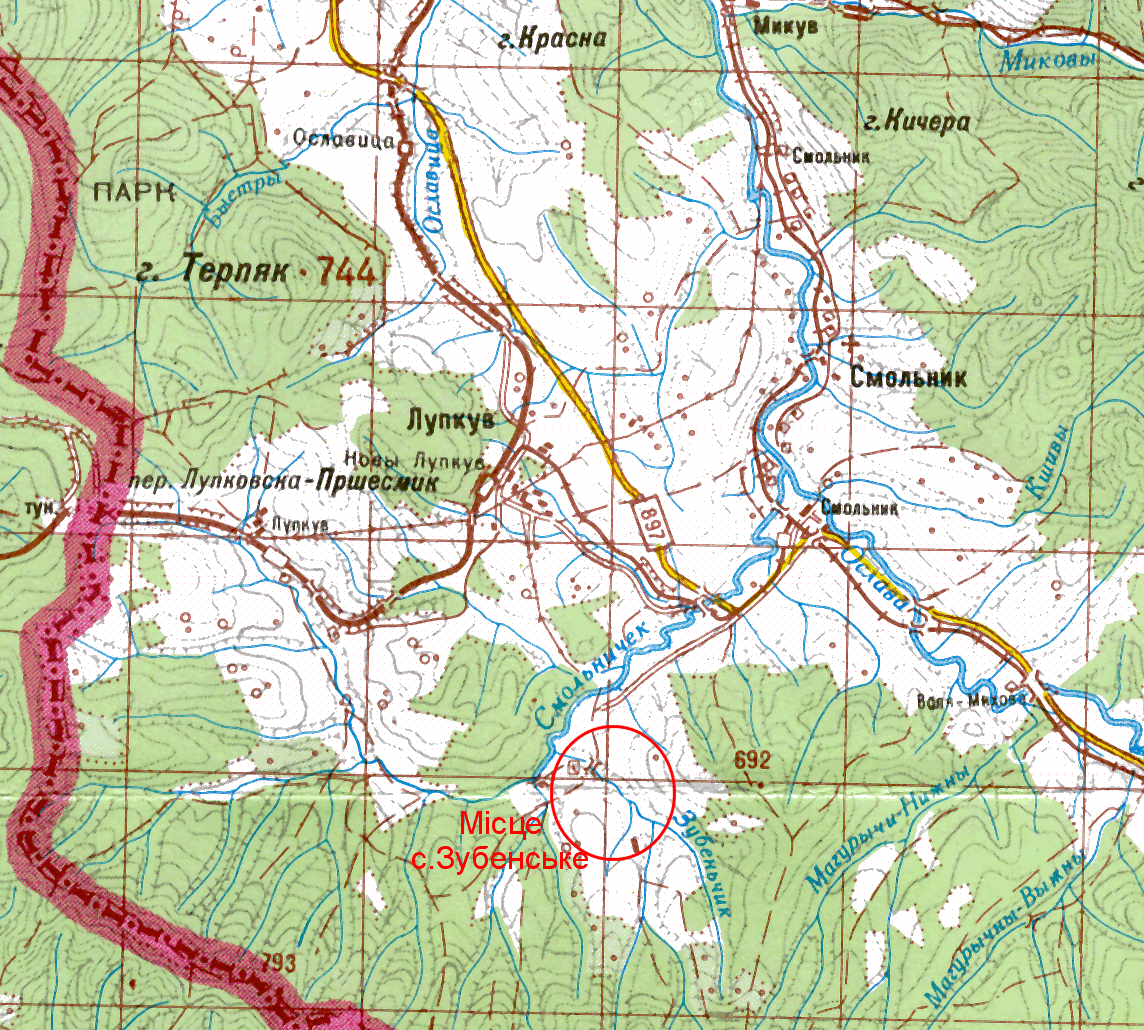 Карта (Смольник)Розмір зображення: 1144:1030 піксел Карта Київської військово-картографічної фабрики, масштаб 1:100000, аркуш 125, друк 2001 р. (за матеріалами 2000 р.). |