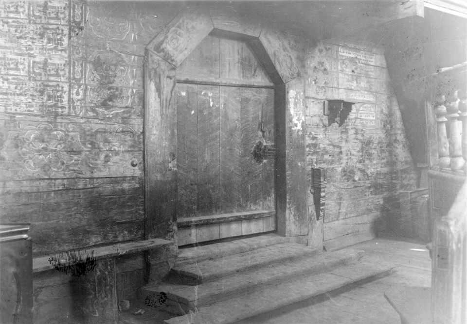 Інтер’єр притвора зі входомРозмір зображення: 960:668 піксел Фото Стефана Таранушенка і Павла Жолтовського з експедиції Харківського музею українського мистецтва. 1920-і рр. (?) Опубліковано 13.09.2019 р. |