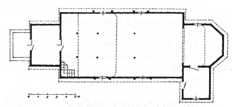 План церкви. За: Gorak J. Dawne cerkwie drewniane w wojewodztwie Zamojskim. - Zamosc, 1984.Розмір зображення: 800:369 піксел Джерело: Слободян В. Церкви Холмської єпархії. – Львів: Наукове товариство ім. Шевченка, 2005 р., с. 383. |