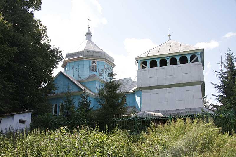 2009 р. Церква і дзвіниця. Вигляд з позиції А4Розмір зображення: 800:533 піксел Фото Зенона Боровця і Богдана Тхора, 8 серпня 2009 р. |