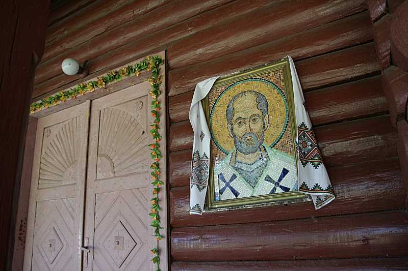 Двері та ікона св. МиколиРозмір зображення: 800:533 піксел Фото Зенона Боровця і Богдана Тхора, 4 серпня 2013 р. |