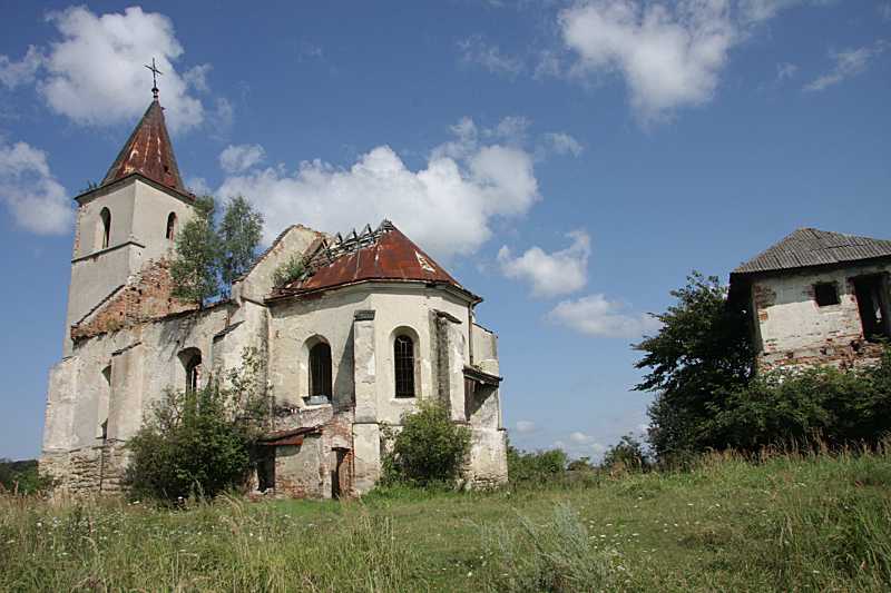 Загальний вигляд з південого сходуРозмір зображення: 800:533 піксел Праворуч – плебанія (?). Фото Зенона Боровця і Богдана Тхора, 8 серпня 2009 р. |