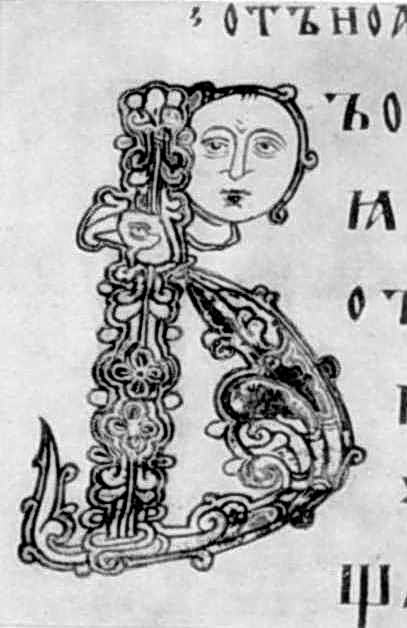 Ініціал з Остромирова євангелія. 1056 – 1057 pp. Державна публічна бібліотека ім. М. Є. Салтикова-Щедріна (Ленінград).