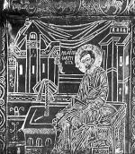 Царские врата (из б. собрания Н. П. Лихачева). Изображены: Благовещение, евангелисты Иоанн, Матфей, Лука и Марк