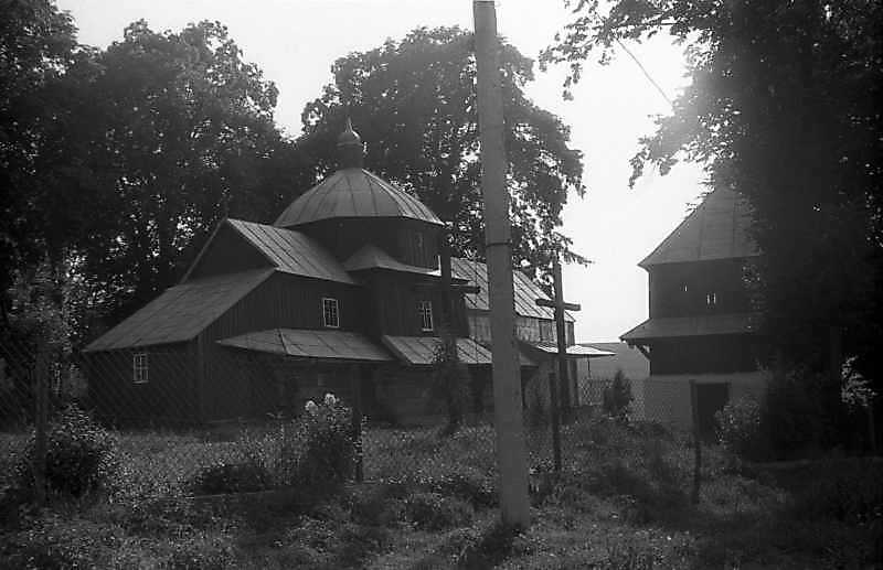 1993 р. Церква і дзвіниця. Вигляд з північного сходуРозмір зображення: 800:517 піксел 1993 р. 9 липня. Фото М.І.Жарких. Негатека, № 797-22. |