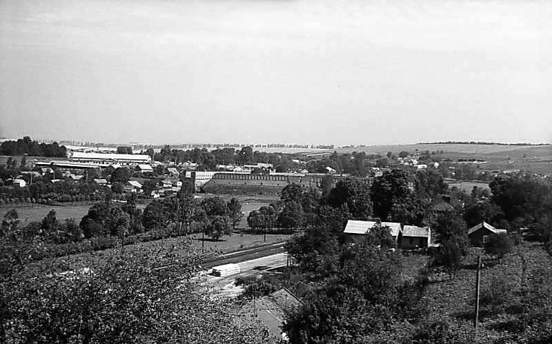1977 р. Панорама села із замком. Вигляд з півдняРозмір зображення: 800:499 піксел 1977 р. 17 липня. Фото М.І.Жарких. Негатека, № A322-27. |