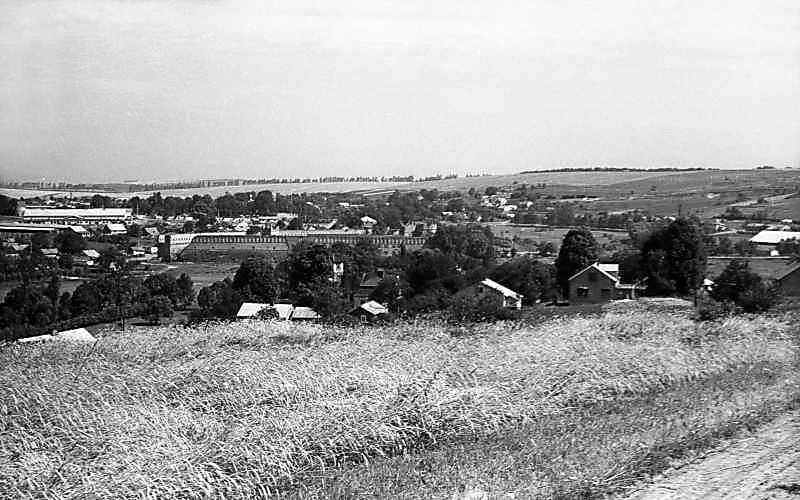 1977 р. Панорама села із замком. Вигляд з півдняРозмір зображення: 800:500 піксел 1977 р. 17 липня. Фото М.І.Жарких. Негатека, № A322-29. |