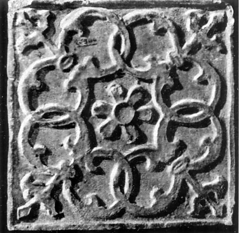 У фондах Дніпропетровського історико-краєзнавчого музею зберігаються дві кахлі, відтиснені з однієї форми. Одна вкрита зеленою поливою, друга – неполив’яна. їхній рельєфний орнамент складається з чотирьох пар кіл, що перетинають один одного. В кутах кахлів зображено листки, в центрі – шестипелюсткову квітку. Знайдено ці кахлі на руїнах фортеці в Кодаку і датовано початком XVII століття (с. 398).