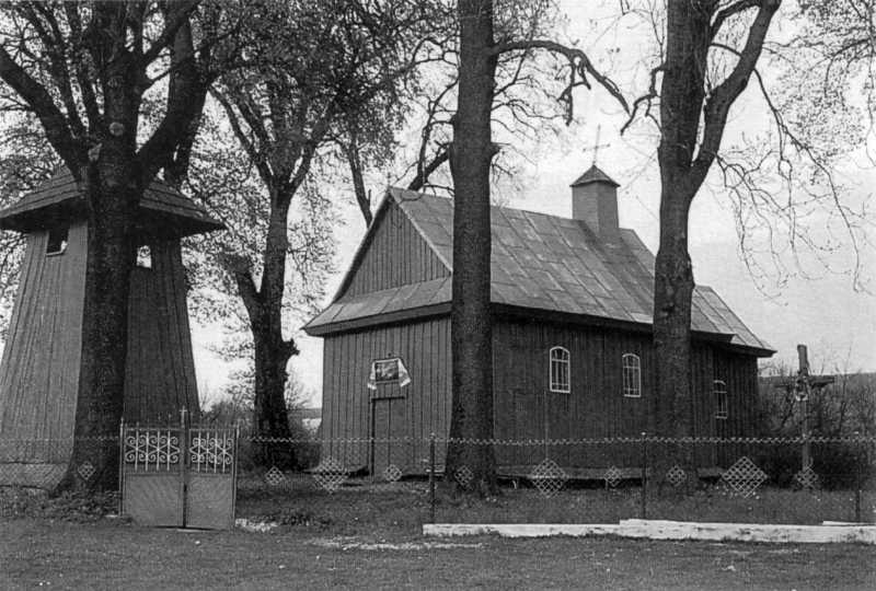 Вперше згадується у 1589 р. Існуюча збудована на місці давнішої дерев’яної у 1865 р. Це дерев’яна дводільна безверха будівля, вищий двосхилий дах нави якої вінчає квадратова в перекрої вежечка. По другій світовій війні стояла зачиненою 28 років до 1989 р.