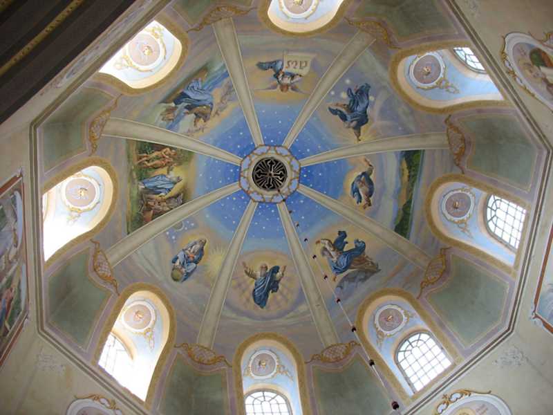 Інтер’єр купола Розмір зображення: 800:600 піксел Фото Зенона Боровця, 10 лютого 2007 р. Вкладені елементи Творення води Творення землі Творення сонця й зірок «Я єсмь альфа і омега» Творення риб і птахів