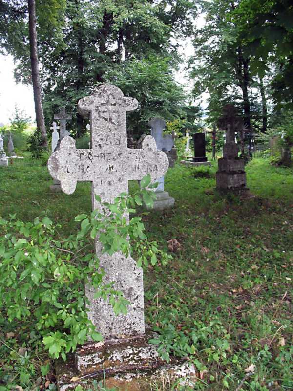 Цвинтар Розмір зображення: 600:800 піксел Фото Зенона Боровця і Богдана Тхора, 9 серпня 2012 р. Вкладені елементи Могила родини Штогринів (+) Могила родини Незабитовських (+) Могила М. Кармаліти (+) Могила 1 (+) Могила 2 Кенотаф героям України