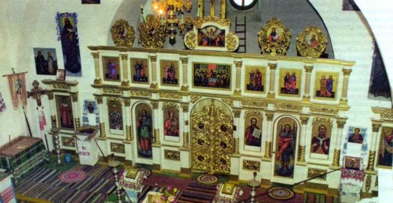 [2002 р.] Інтер’єр з видом на іконостасРозмір зображення: 800:414 піксел Джерело: Пам’ятки України, 2002 р., № 2, с. 44. |