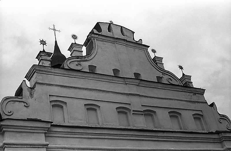 1983 р. Західний фронтон. Вигляд із заходуРозмір зображення: 800:522 піксел 1983 р. 30 липня. Фото М.І.Жарких. Негатека, № 259-04. |