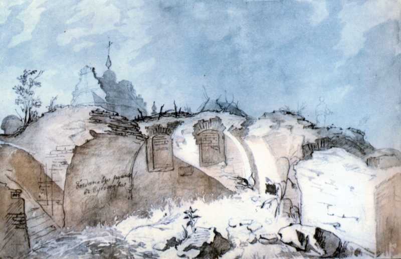 Т.Шевченко. Богданові руїни в Суботові. Акварель. 1845 р.
