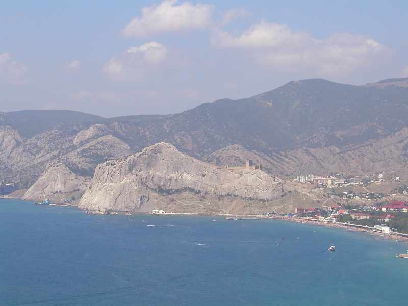 2004 р. Фортечна гора на тлі масиву Перчем. Вигляд зі сходу, з мису Алчак Розмір зображення: 800:600 піксел Попередня сторінка | Вище | Наступна сторінка