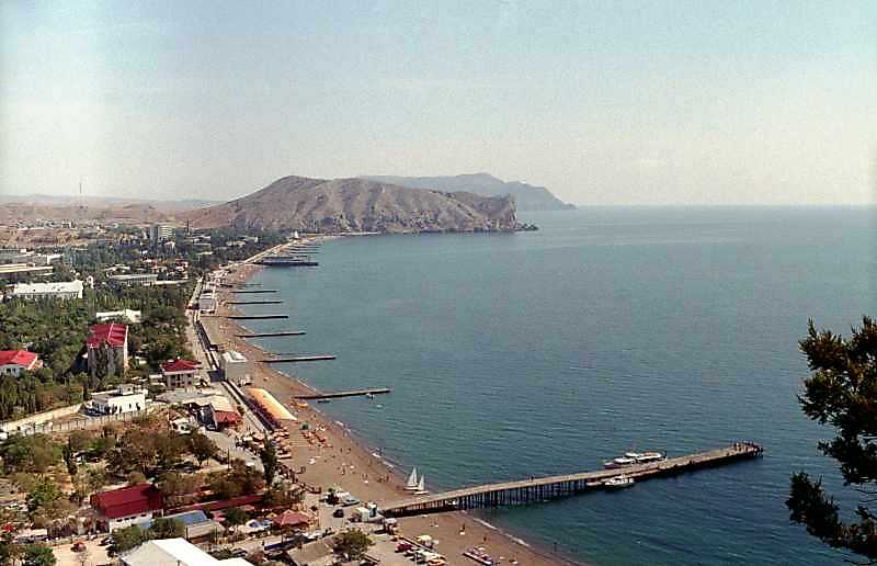 2001 р. Вид Судацької бухти з мисами Алчак та Меганом із заходу, з цитаделі фортеціРозмір зображення: 800:516 піксел 2001 р. 24 вересня. Фото М.І.Жарких. Негатека, № 940-14. |
