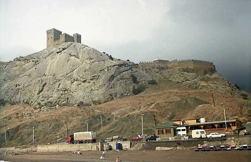 2001 р. Консульський замок і східна частина нижнього ярусу оборони. Вигляд з південного сходуРозмір зображення: 800:515 піксел 2001 р. 26 вересня. Фото М.І.Жарких. Негатека, № 945-34. |