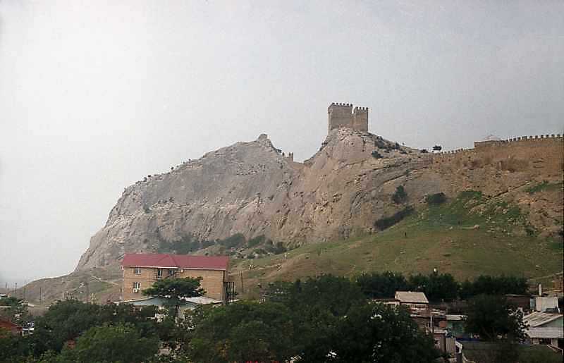 2001 р. Дозорна башта, Консульський замок і фрагмент східного муру. Вигляд зі сходуРозмір зображення: 800:515 піксел 2002 р. 11 вересня. Фото М.І.Жарких. Негатека, № 949-30. |
