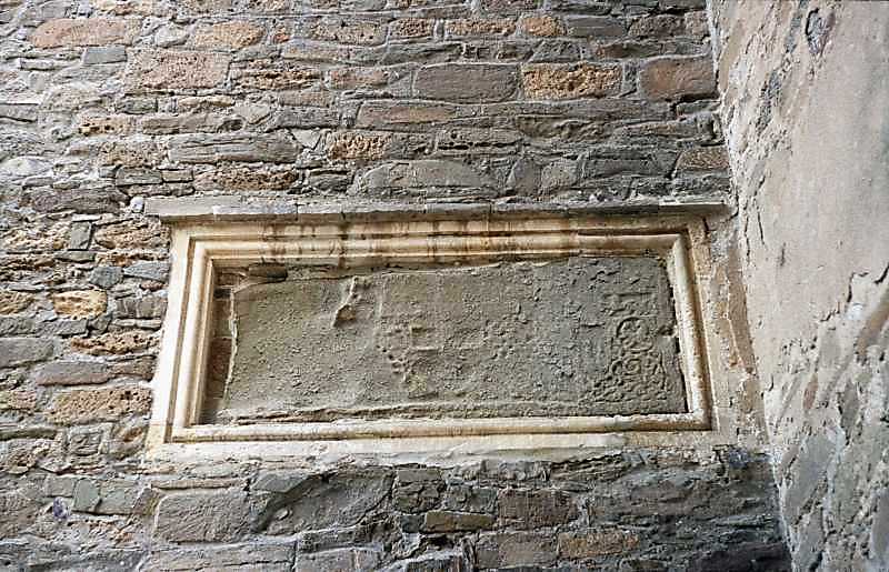 2002 р. Плита з будівельним написом на східній стіні (в проході брами)