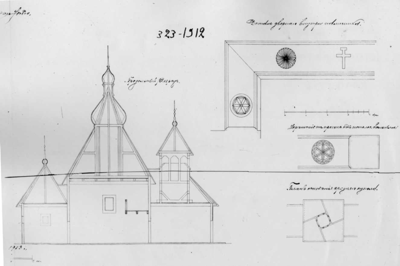1912 р. Переріз, деталіРозмір зображення: 1325:882 піксел З сайту Із книги: Слюнькова И. Н. Храмы и монастыри Беларуси XIX века в составе Российской империи: Пересоздание наследия. ― М.: Прогресс-Традиция, 2010. |